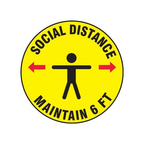 Accuform, PSW117YL, Pavement Print Sign: Social Distance Maintain 6 FT, Backgraund Color Yellow, 17"