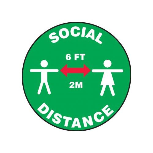 Accuform, PSW118GN, Pavement Print Sign: Social Distance 6FT 2M, Backgraund Color Blue, 17"