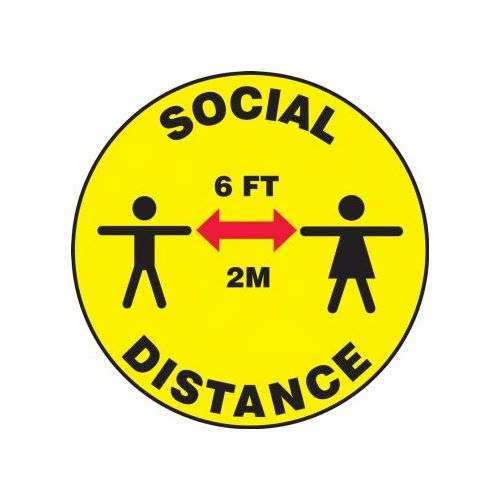 Accuform, PSW118YL, Pavement Print Sign: Social Distance 6FT 2M, Backgraund Color Yellow, 17"