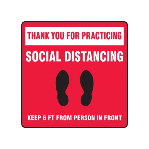 Accuform, PSW122RD, Pavement Print Sign: Thank You For Practicing Social Distancing Keep 6 FT From Person In Front, Backgraund Color Red, 17"