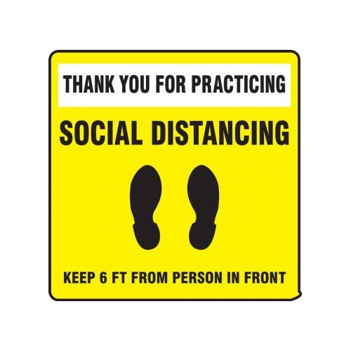 Accuform, PSW122YL, Pavement Print Sign: Thank You For Practicing Social Distancing Keep 6 FT From Person In Front, Backgraund Color Yellow, 17"