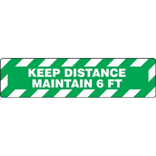Accuform, PSW124GN, Pavement Print Sign: Keep Distance Maintain 6 FT, Backgraund Color Blue, 6" x 24"
