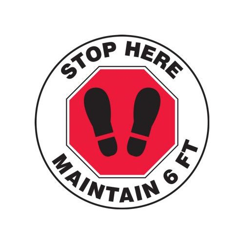 Accuform, PSW125, Pavement Print Sign: Stop Here Maintain 6 FT, 17"
