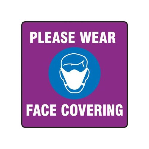 Accuform, PSW127PR, Pavement Print Sign: Please Wear Face Covering, Backgraund Color Purple, 17" x 17"