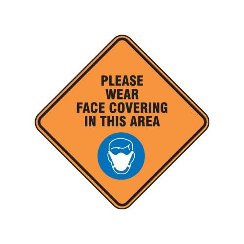 Accuform, PSW128OR, Pavement Print Sign: Please Wear Face Covering In This Area In This Area, Backgraund Color Orange, 17" x 17"