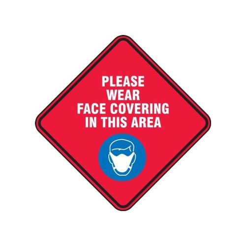 Accuform, PSW128RD, Pavement Print Sign: Please Wear Face Covering In This Area In This Area, Backgraund Color Red, 17" x 17"