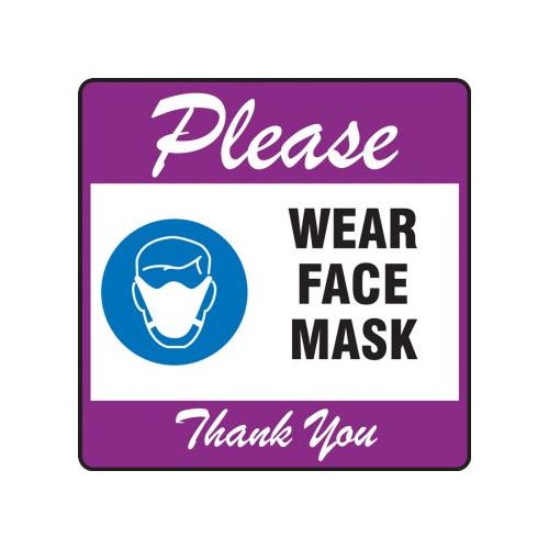 Accuform, PSW129PR, Pavement Print Sign: Please Wear Face Mask Thank You, Backgraund Color Purple, 17" x 17"