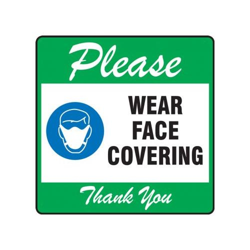 Accuform, PSW130GN, Pavement Print Sign: Please Wear Face Covering Thank You, Backgraund Color Blue, 17" x 17"
