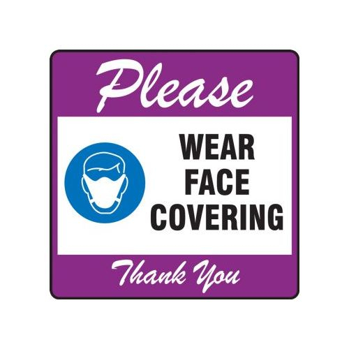 Accuform, PSW130PR, Pavement Print Sign: Please Wear Face Covering Thank You, Backgraund Color Purple, 17" x 17"