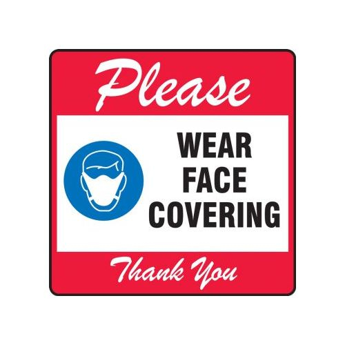 Accuform, PSW130RD, Pavement Print Sign: Please Wear Face Covering Thank You, Backgraund Color Red, 17" x 17"