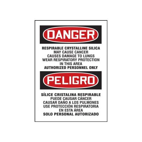 Accuform, SBLCAW121XVE, Spanish / English OSHA Danger Safety Label "Respirable Crystalline Silica - May Cause Cancer ...", Adhesive Dura-Vinyl, 7" x 5"