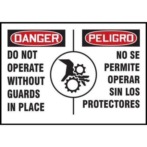 Accuform, SBLEQM005XVE, 3-1/2" x 5" Bilingual OSHA Danger Equipment Safety Label "Do Not Operate Without Guards In Place" Adhesive Dura Vinyl