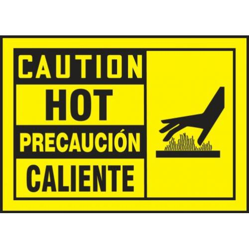 Accuform, SBLEQM621XVE, 3-1/2" x 5" Bilingual OSHA Caution Safety Labels "Hot" Adhesive Dura Vinyl