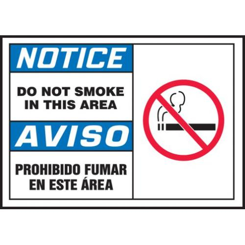 Accuform, SBLSMK803VSP, 3-1/2" x 5" Bilingual OSHA Notice Safety Label "Do Not Smoke In This Area" Adhesive Vinyl