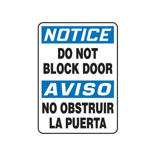 Accuform, SBMABR802XV, 14" x 10" OSHA Notice Bilingual Safety Sign "Do Not Block Door" Adhesive Dura Vinyl