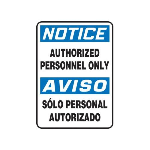 Accuform, SBMADC801XT, 14" x 10" Bilingual OSHA Notice Safety Sign "Authorized Personnel Only" Dura-Plastic