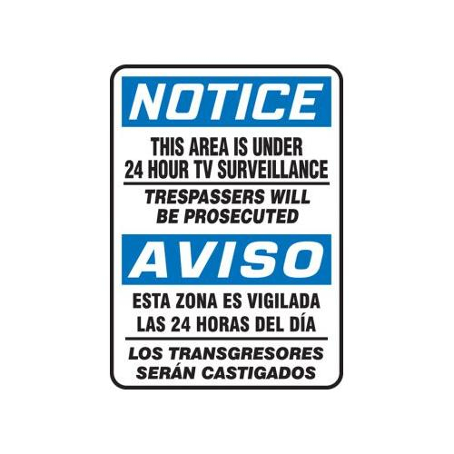 Accuform, SBMASE812XP, 14" x 10" Bilingual OSHA Notice Safety Sign "This Area Is Under 24 Hour Tv Surveillance" Accu-Shield