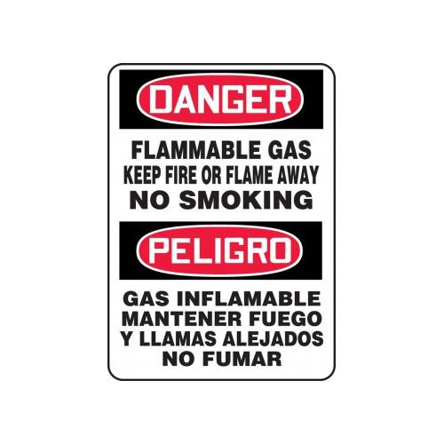Accuform, SBMCHG062XL, 14" x 10" Bilingual Spanish OSHA Danger Safety Sign "Flammable Gas Keep Fire Or Flame Away No Smoking" Aluma-Lite