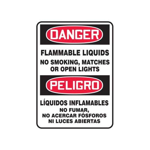 Accuform, SBMCHG068VP, 14" x 10" Bilingual OSHA Danger Safety Sign "Flammable Liquids - No Smoking, Matches Or Open Lights" Plastic