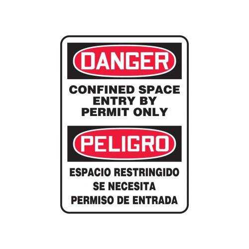 Accuform, SBMCSP018VS, 14" x 10" Spanish Bilingual Safety Sign "Confined Space Entry By Permit Only" Adhesive Vinyl