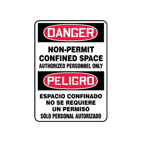 Accuform, SBMCSP020XV, 14" x 10" Bilingual OSHA Danger Safety Sign "Non-Permit Confined Space Authorized Personnel Only" Adhesive Dura Vinyl