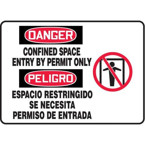 Accuform, SBMCSP126MXL, 10" x 14" Bilingual OSHA Danger Safety Sign "Confined Space Entry By Permit Only" Aluma-Lite