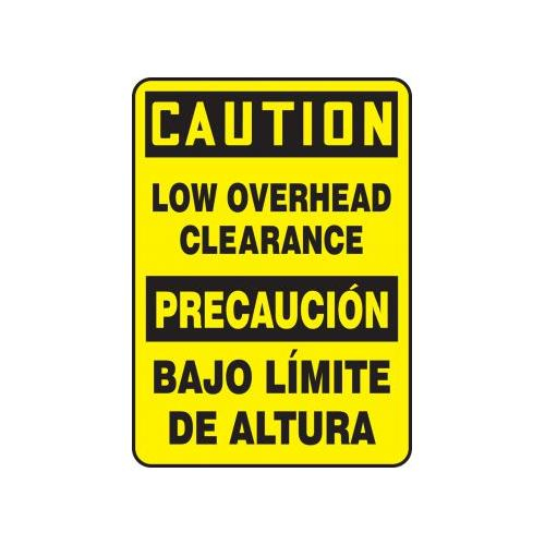 Accuform, SBMECR606VA, 14" x 10" Bilingual OSHA Caution Safety Sign "Low Overhead Clearance" Aluminum
