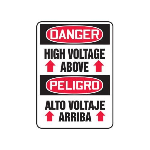 Accuform, SBMELC011XP, 14" x 10" Bilingual OSHA Danger Safety Sign "High Voltage Above" Accu-Shield
