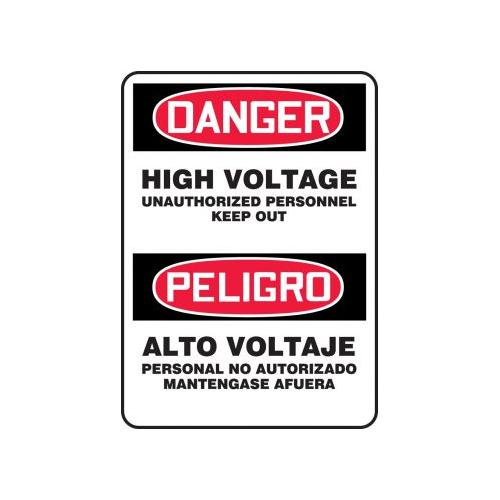 Accuform, SBMELC044XP, 14" x 10" Bilingual Safety Sign Spanish "High Voltage Unauthorized Personnel Keep Out" Accu-Shield