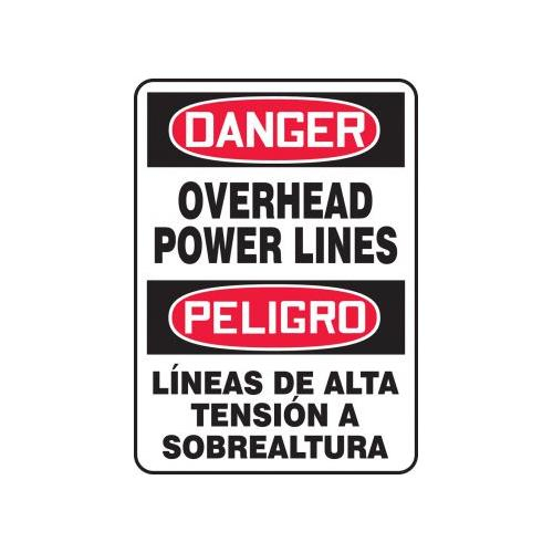 Accuform, SBMELC054VS, 14" x 10" Bilingual OSHA Danger Safety Sign "Overhead Power Lines" Adhesive Vinyl