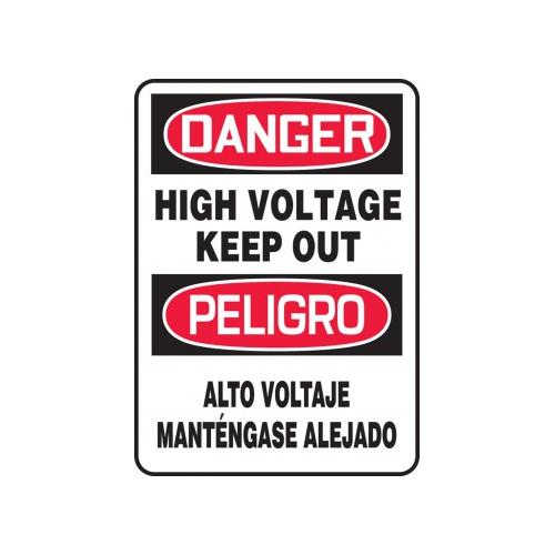 Accuform, SBMELC128XV, 14" x 10" Bilingual OSHA Danger Safety Sign "High Voltage Keep Out" Adhesive Dura Vinyl