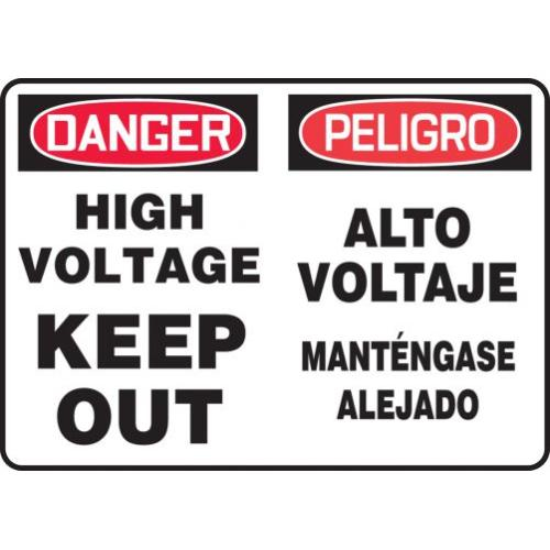Accuform, SBMELC129MXP, 14" x 20" Bilingual OSHA Danger Safety Sign "High Voltage Keep Out" Accu-Shield
