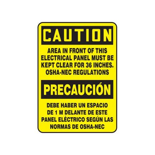Accuform, SBMELC638VP, 20" x 14" Bilingual Safety Sign Spanish "Area In Front Of This Electrical Panel Must Be Kept Clear For 36 Inches. OSHA-NEC Regulations" Plastic