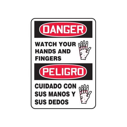 Accuform, SBMEQM030XL, 14" x 10" Bilingual OSHA Danger Safety Sign "Watch Your Hands And Fingers" Aluma-Lite