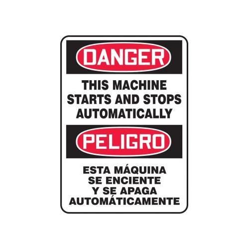 Accuform, SBMEQM152XT, 14" x 10" Bilingual OSHA Danger Safety Sign "This Machine Starts And Stops Automatically" Dura-Plastic