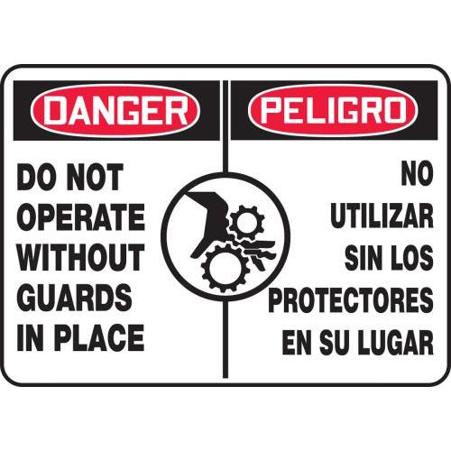 Accuform, SBMEQM174VP, 10" x 14" Bilingual OSHA Danger Safety Sign "Do Not Operate Without Guards In Place" Plastic
