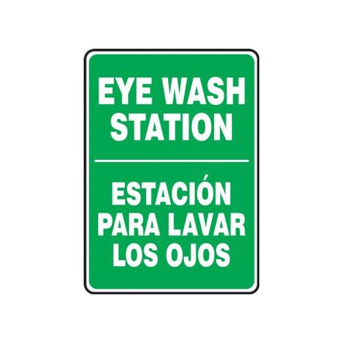 Accuform, SBMFSD988XV, 14" x 10" Bilingual Safety Sign "Eye Wash Station" Adhesive Dura Vinyl