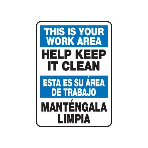 Accuform, SBMHSK945XL, 14" x 10" Bilingual Safety Sign "This Is Your Work Area Help Keep It Clean" Aluma-Lite