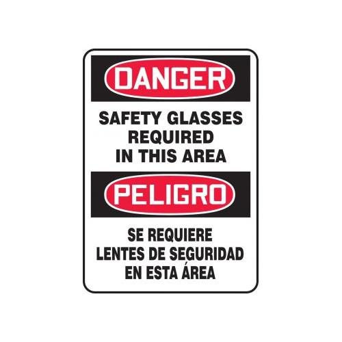 Accuform, SBMPPA003XP, 20" x 14" Bilingual OSHA Danger Safety Sign "Safety Glasses Required In This Area" Accu-Shield