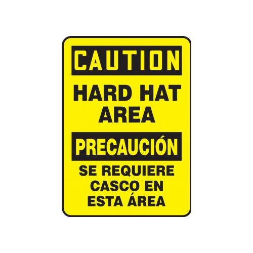 Accuform, SBMPPA614VA, 20" x 14" Bilingual OSHA Caution Safety Sign "Hard Hat Area" Aluminum