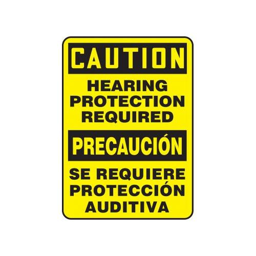 Accuform, SBMPPA630XT, 14" x 10" Bilingual Spanish OSHA Caution Safety Sign "Hearing Protection Required" Dura-Plastic