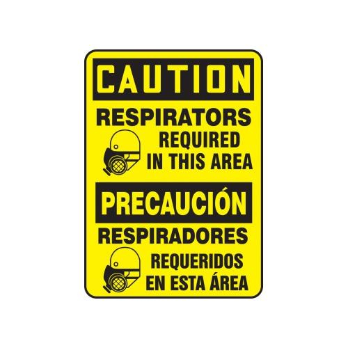 Accuform, SBMPPA652XV, 14" x 10" Bilingual OSHA Caution Safety Sign "Respirators Required In This Area" Adhesive Dura Vinyl