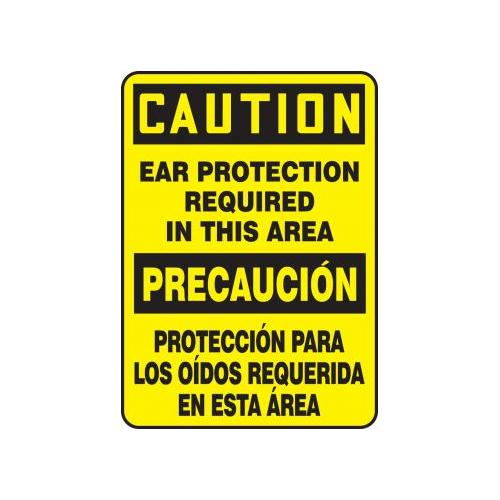 Accuform, SBMPPA661XP, 20" x 14" Bilingual OSHA Caution Safety Sign "Ear Protection Required In This Area" Accu-Shield