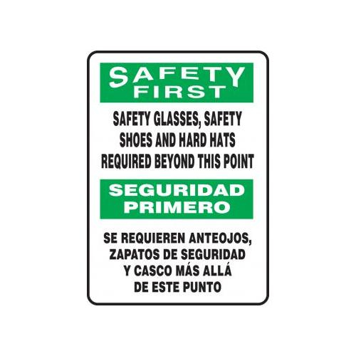 Accuform, SBMPPA904XV, 14" x 10" Spanish Bilingual Safety Sign "Safety Glasses, Safety Shoes And Hard Hats Required Beyond This Point" Adhesive Dura Vinyl