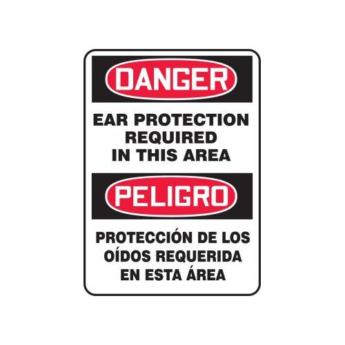 Accuform, SBMPPE108VS, 14" x 10" Bilingual Safety Sign Spanish "Ear Protection Required In This Area" Adhesive Vinyl