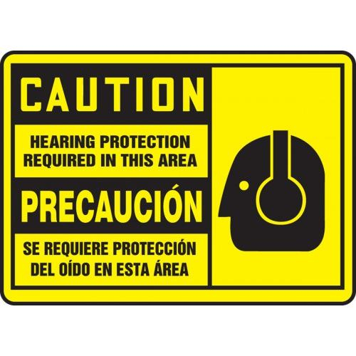 Accuform, SBMPPE410MXT, 7" x 10" Bilingual OSHA Caution Safety Sign "Hearing Protection Required In This Area" Dura-Plastic