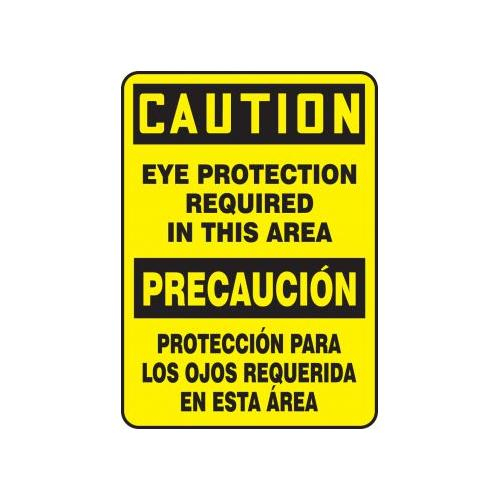 Accuform, SBMPPE626VA, 14" x 10" Bilingual OSHA Caution Safety Sign "Eye Protection Required In This Area" Aluminum