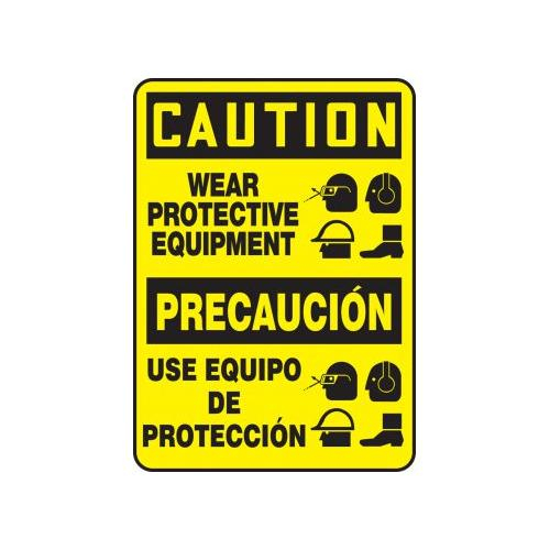 Accuform, SBMPPE755VP, 14" x 10" Bilingual OSHA Caution Safety Sign "Wear Protective Equipment" Plastic