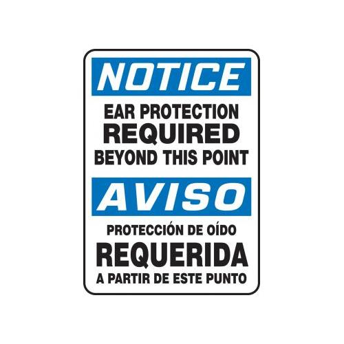 Accuform, SBMPPE889XV, 14" x 10" Bilingual OSHA Notice Safety Sign "Ear Protection Required Beyond This Point" Adhesive Dura Vinyl