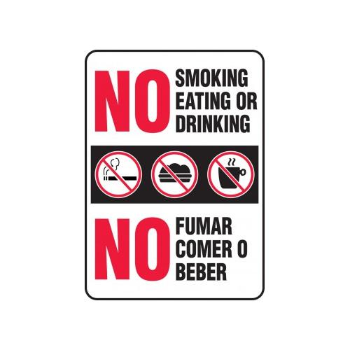 Accuform, SBMSMK585XV, 14" x 10" Bilingual Safety Sign "No Smoking Eating Or Drinking" Adhesive Dura-Vinyl